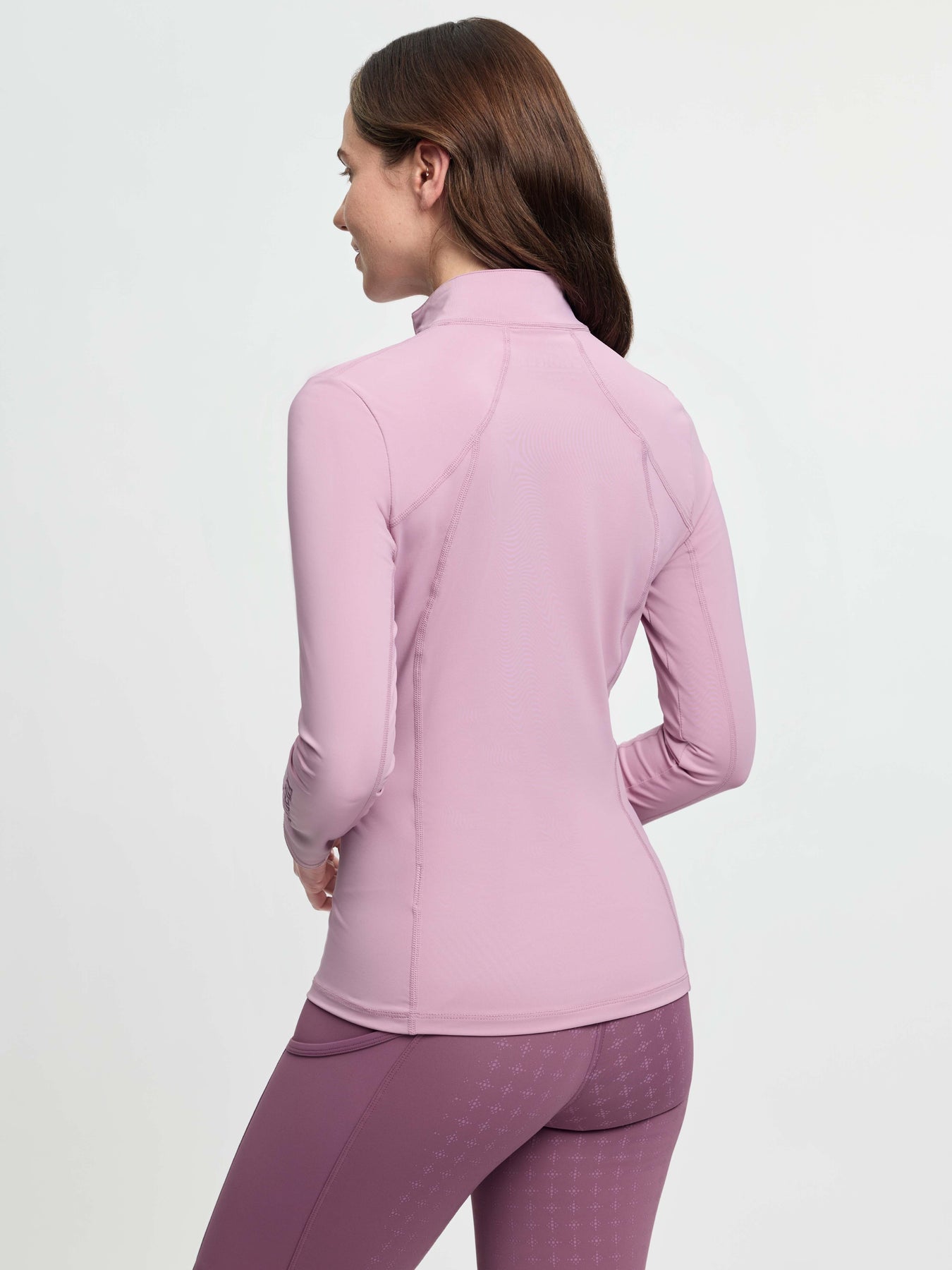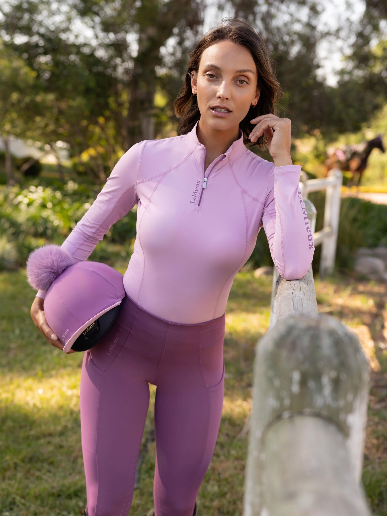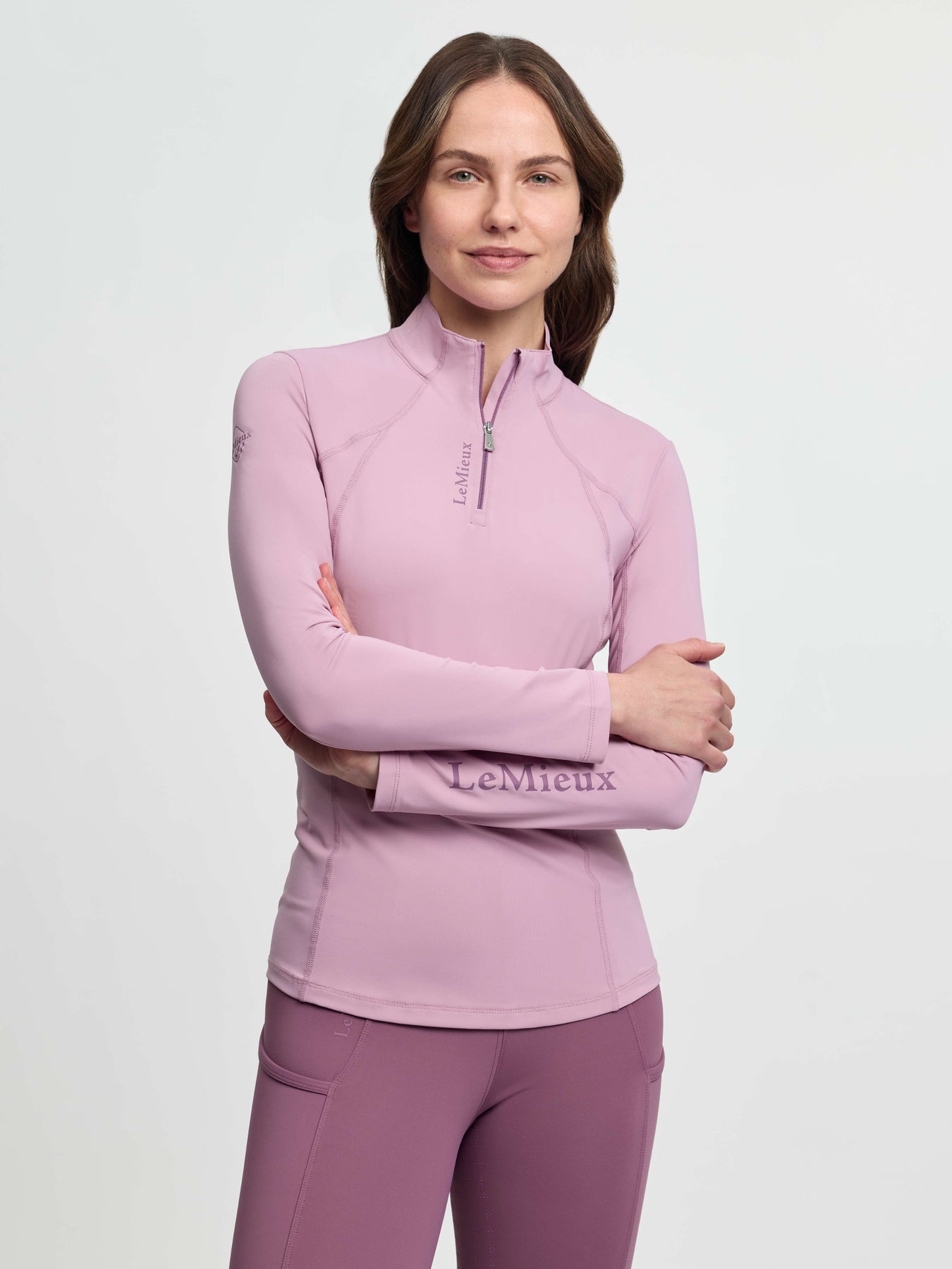 Do it all in this UV50+ quarter zip base layer. Its technical fabric regulates your body temperature, with vented underarms to keep you cool and dry. Contrast matte logo print is a subtle sign of the quality you expect from LeMieux.