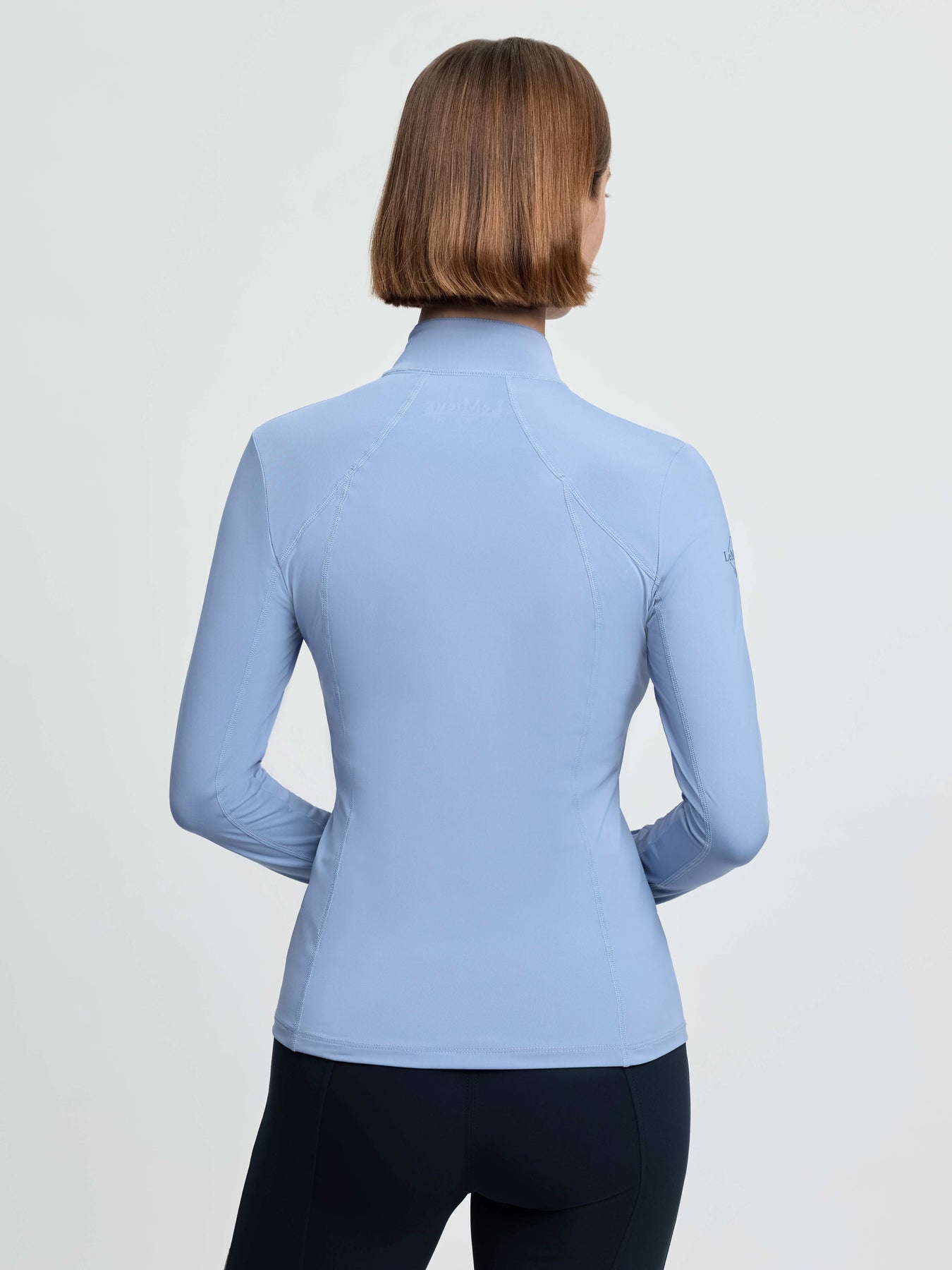 Do it all in this UV50+ quarter zip base layer. Its technical fabric regulates your body temperature, with vented underarms to keep you cool and dry. Contrast matte logo print is a subtle sign of the quality you expect from LeMieux.