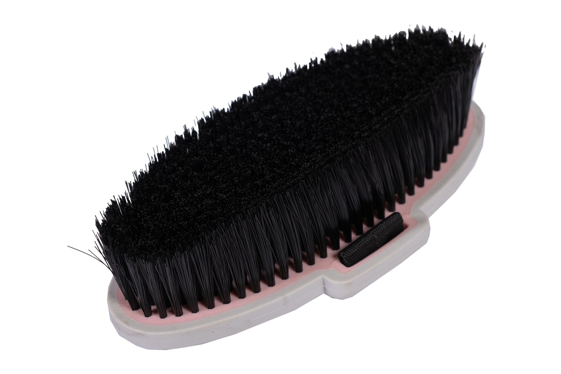 The half horse hair, half goats' hair bristles make this body brush ideal for varied grooming of clipped or sensitive-skinned horses, while the flexible design allows reach to almost every part of the horse's body.