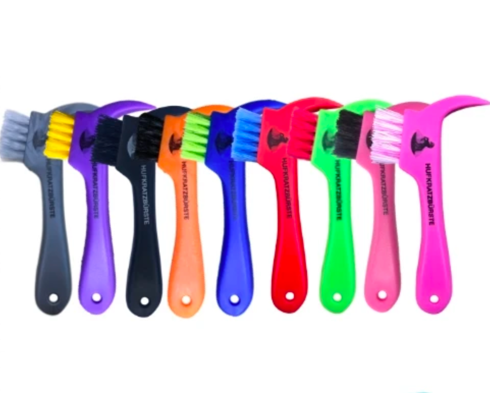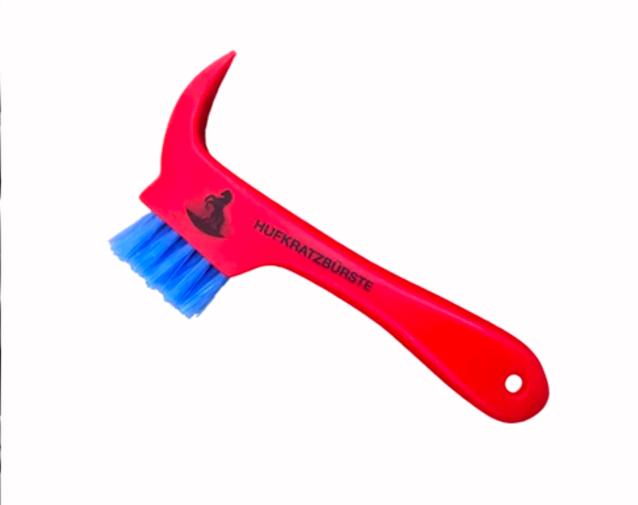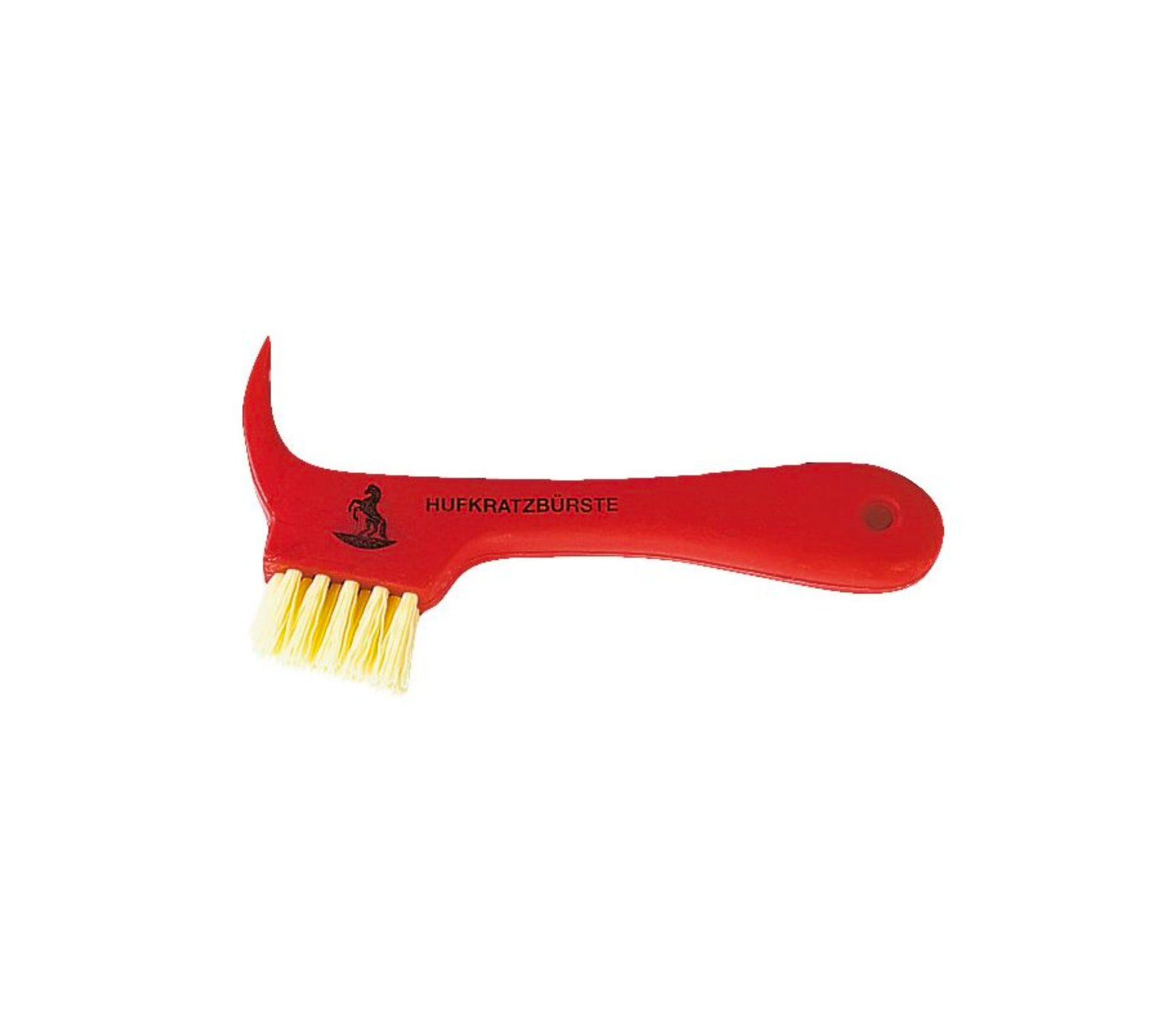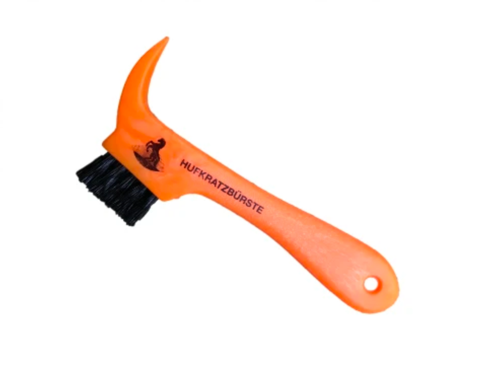 HAAS Hoof Pick With Brush A heavy duty hoof pick made from a strong sturdy resin! The Haas Hoof Pick features a pointed hard plastic end that is ideal for cleaning out the hoof while the handy brush sweeps away small debris. Made in Germany.