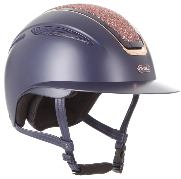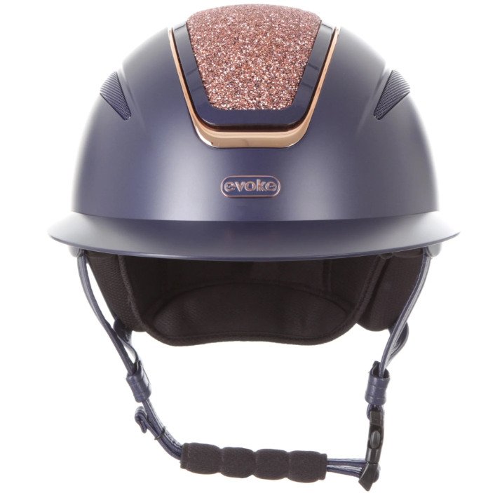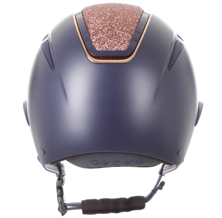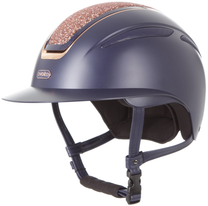 Regular price £169.99The Evoke Callisto Wide Peak Navy Rose Gold Crystal helmet offers a perfect blend of protection, style, and sparkle. With a navy base, rose gold accents, and crystal embellishments, this wide peak helmet ensures comfort and standout elegance on every ride.