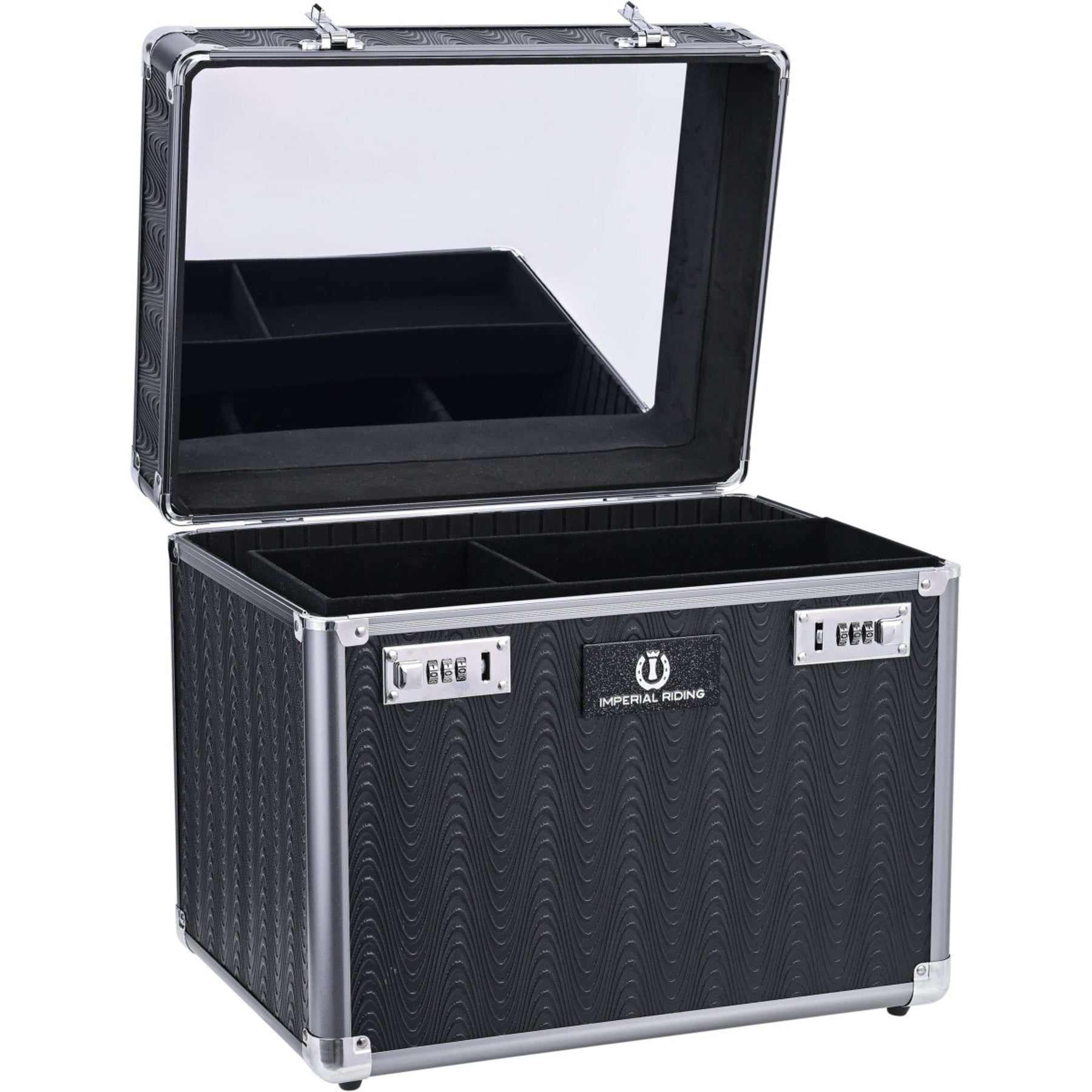 Regular price £69.95IRH-Shiny Grooming Box – Robust, Organized & GlamorousAre you a rider who likes to shine, both in and out of the arena? Then the IRH-Shiny Cleaning Box is your ultimate companion! This grooming box is not just a storage unit: It is a fashion statement for every glamorous rider. With its robust construction, it can take a beating in the stable, while the smart design helps you keep all your cleaning and braiding supplies perfectly organized. Think of the handy flat insert for all your braiding supplies, the smart dividers that keep everything in place, and even a built-in mirror for that quick check-up. And with the reliable combination locks, you can be sure that your valuable items are safe. Dare to shine with this indispensable accessory that combines functionality and pure glamour! Robust and durable construction for daily stable useFlat insert tray, perfect for all your braiding suppliesHandy dividers for a clear layoutIntegrated mirror for quick touch-upsReliable combination locks for extra security of your stuff
