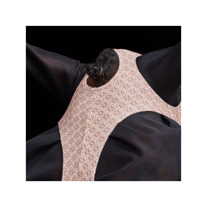Hey rider, keep your equine partner comfy and protected in the saddle with the HVPNena print Flymask! This isn't just any flymask; it's designed with your horse's comfort and performance in mind. Featuring a fantastic 4-way stretch fabric and a secure zipper closure, it offers a snug, compression fit around the head without any fuss. The strategically placed mesh panels around the eyes and mesh ears provide excellent ventilation and crucial defense against pesky bugs and irritating pollen, ensuring your horse stays focused and happy during schooling, trail rides, or turnout. Ride with confidence, knowing your horse is looking stylish and feeling great!