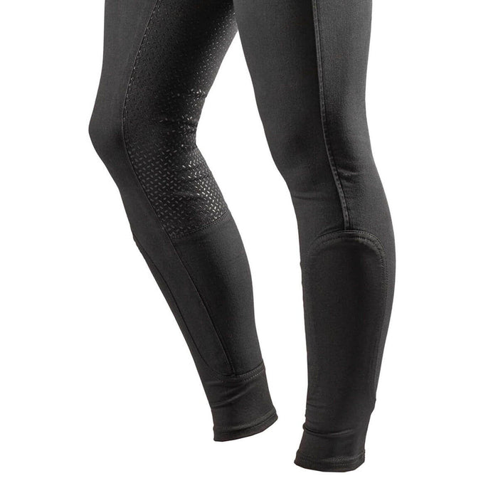 Equipped with a full-seat silicone grip, they offer enhanced security and stability while riding, ensuring optimal performance. The stretch fabric in the lower leg reduces bulk under long-riding boots, chaps, and wellies, allowing for a streamlined and comfortable fit.