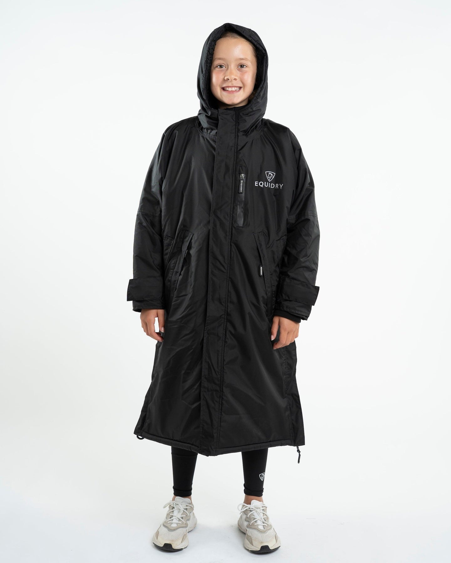 Designed to be oversized and worn full length, this performance coat boasts a remarkable 20,000mm waterproof rating, is fully breathable, fleece-lined, and layer-friendly, allowing plenty of room to comfortably accommodate a body protector.