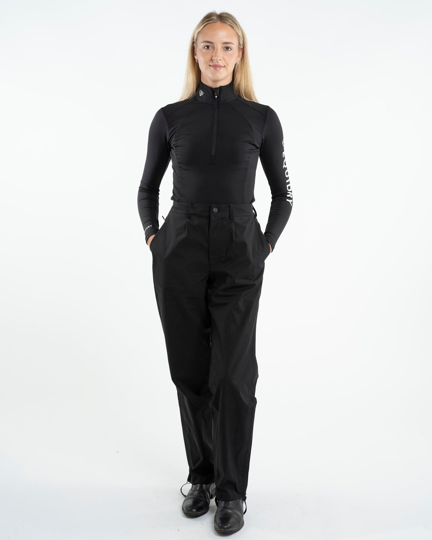 Lightweight and breathable, they’re ideal for layering over your regular riding gear or outdoor clothes. The elasticated waistband ensures a comfortable fit, while the side zips make them easy to put on and take off. With two front pockets, and two zipped back pocket for essentials, and foot stirrups to keep them in place, these trousers are practical and functional for all activities.