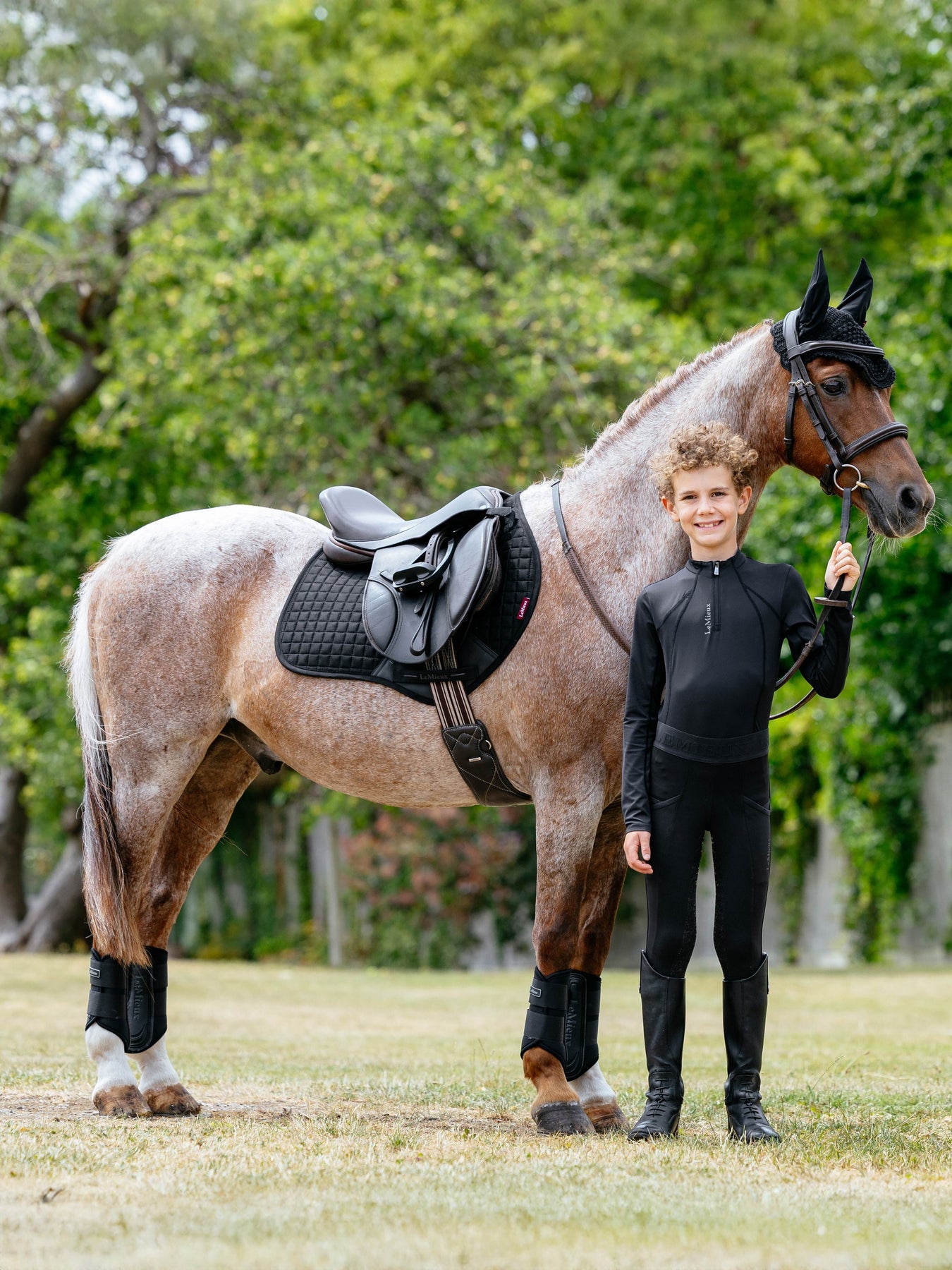 The luxurious yet easy-care suede-effect upper is perfect for everyday occasions, while contoured suede-effect binding prevents mis-shaping. The natural bamboo blend lining absorbs and controls sweat under the saddle. It's also beautifully comfortable and secure, minimising friction even on sensitive-skinned horses.